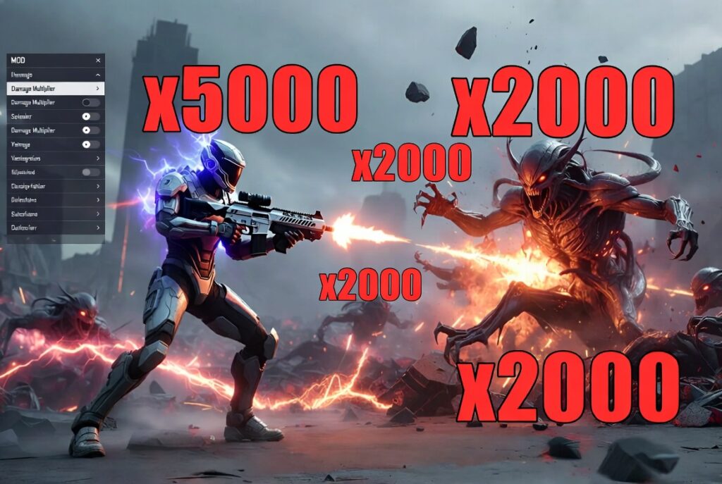 It adds special powers like Damage multiplier, God Mode, and Auto Win so you can win battles easier and have more fun in the sci-fi shooter game.